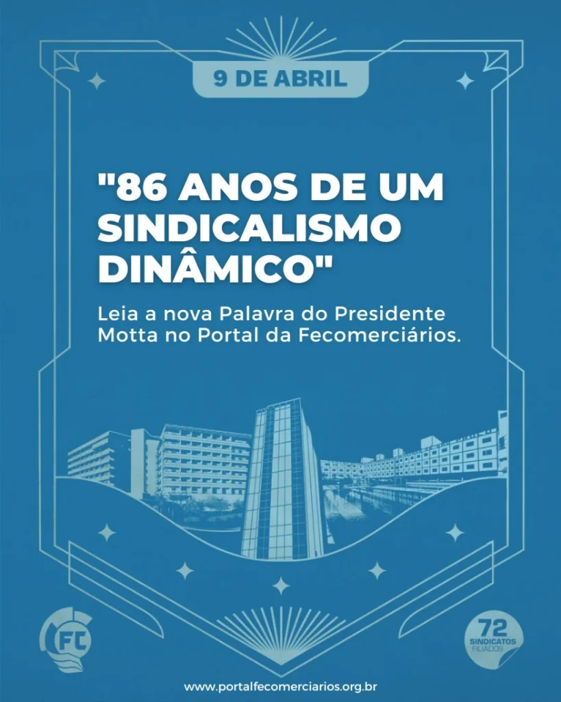 Em 9 de abril, a Federação dos Comerciários do Estado de São Paulo comemora 86 anos de fundação. A maior Federação de trabalhadores urbanos da América Latina conta hoje com 72 Sindicatos Filiados. São os Sindicatos dos Comerciários e os Sindicatos dos Práticos de Farmácia que, juntos, representam mais de 2,5 milhões de trabalhadores no Estado e estão reunidos em nove Regionais. Em mais de oito décadas em defesa dos interesses da categoria, é reconhecida no sindicalismo brasileiro como referência, dadas as ações praticadas por meio do chamado sindicalismo-cidadão. Exemplificam essas ações: