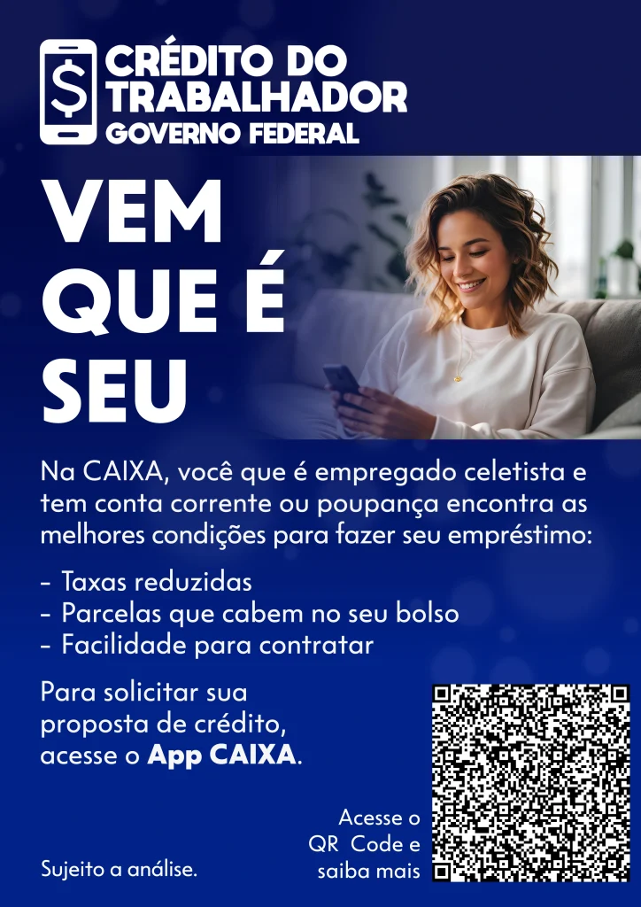 💼 O Crédito do Trabalhador é mais do que um empréstimo: é uma solução moderna, acessível e pensada para quem trabalha duro e precisa de apoio financeiro com responsabilidade. Aproveite essa oportunidade!