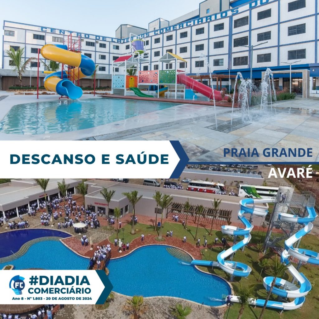 Já a Federação mantém dois Centros de Lazer. A saber: Praia Grande e Avaré, onde está instalado o único parque aquático do sindicalismo brasileiro (saiba mais na seção “Lazer” do Portal da Federação).