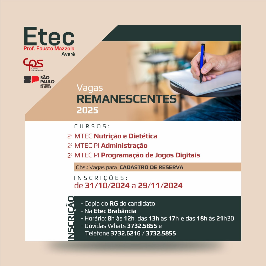 Acesse o link e faça sua inscrição para o vestibulhinho ETEC 2025
