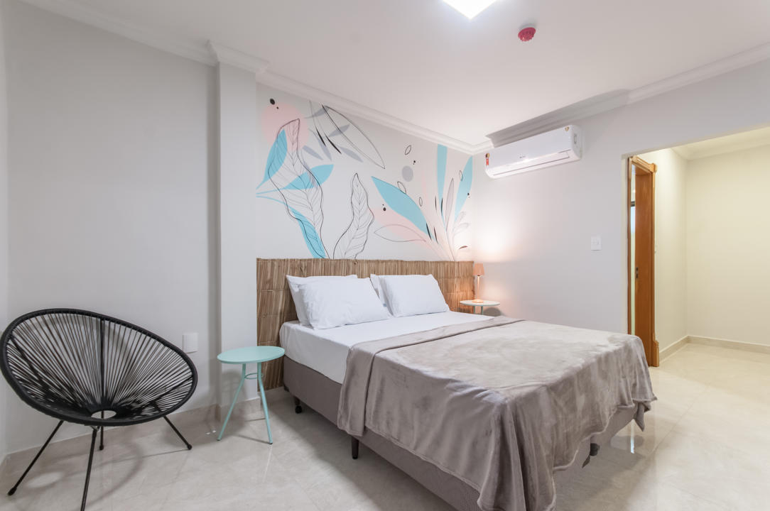 | OBSERVAÇÕES: Apartamento com 1 (um) leito de casal e 1 (um) leito de solteiro, banheiro privativo adaptado, televisão, ar-condicionado, telefone, frigobar, roupas de cama e banho. |