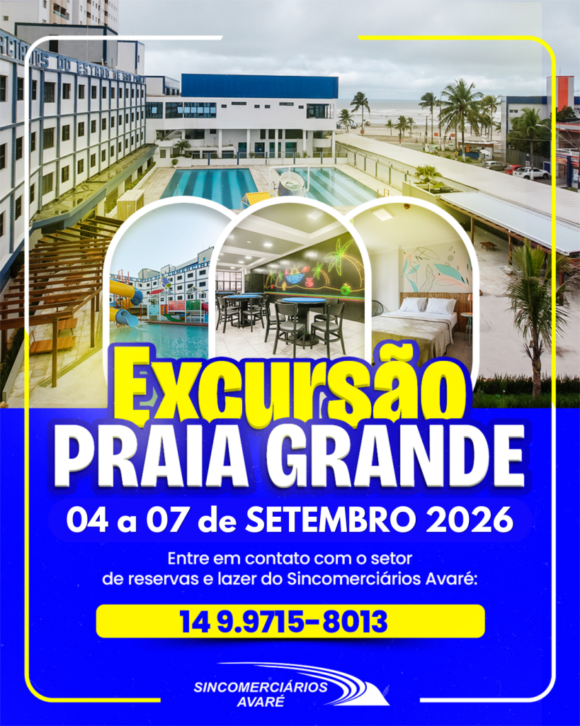 O Sindicato dos Empregados no Comércio de Avaré realizará uma excursão especial ao Centro de Lazer dos Comerciários, em Praia…
