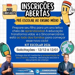 Solicitações dos Kits Escolares Prorrogadas Os comerciários e comerciárias interessados já podem se inscrever para solicitar o kit escolar. As…