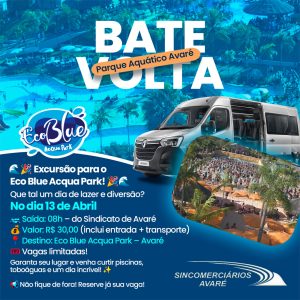 “Reserve sua vaga e desfrute de um dia incrível de diversão e lazer” O Sincomerciários de Avaré está organizando uma…