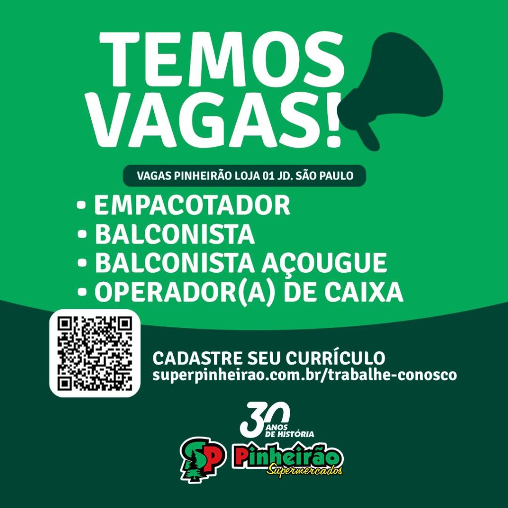 Como se candidatar: Acesse o site superpinheirao.com.br/trabalhe-conosco e cadastre seu currículo.