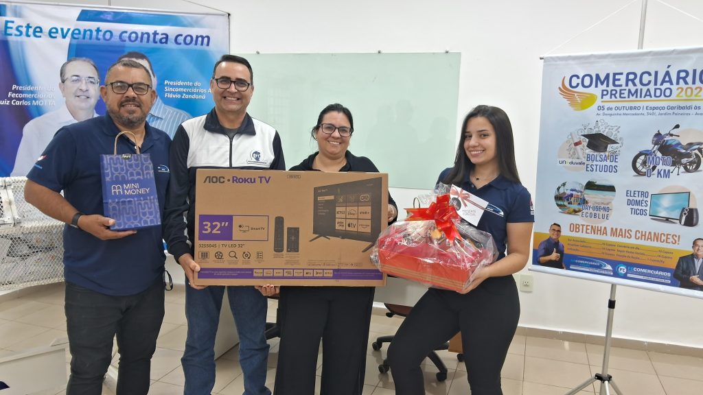 O sorteio premiou comerciários associados com brindes especiais e produtos oferecidos por parceiros locais, em reconhecimento à importância da categoria e ao fortalecimento da valorização profissional.