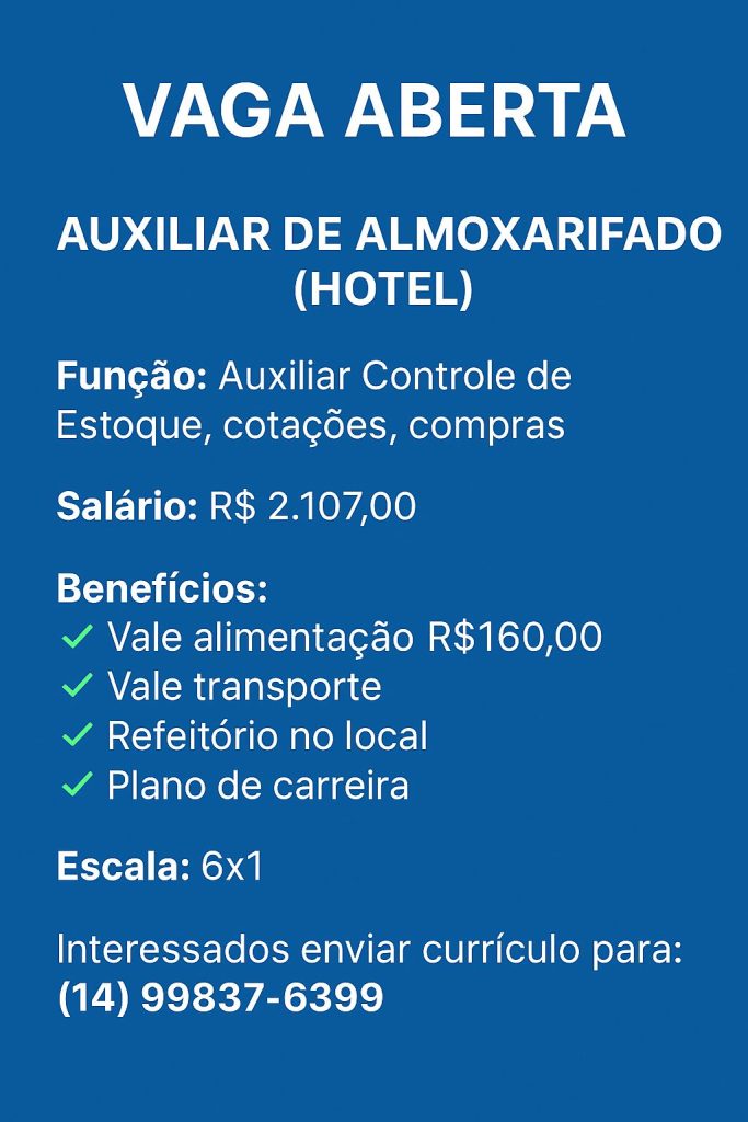 VAGA AUXILIAR DE ALMOXARIFADO