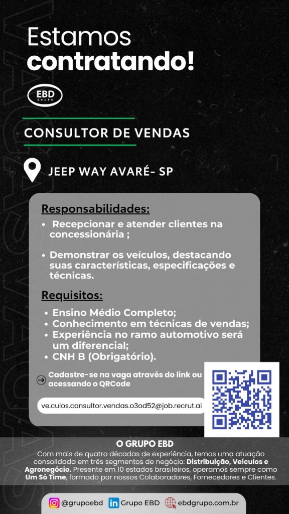 VAGA CONSULTOR DE VENDAS