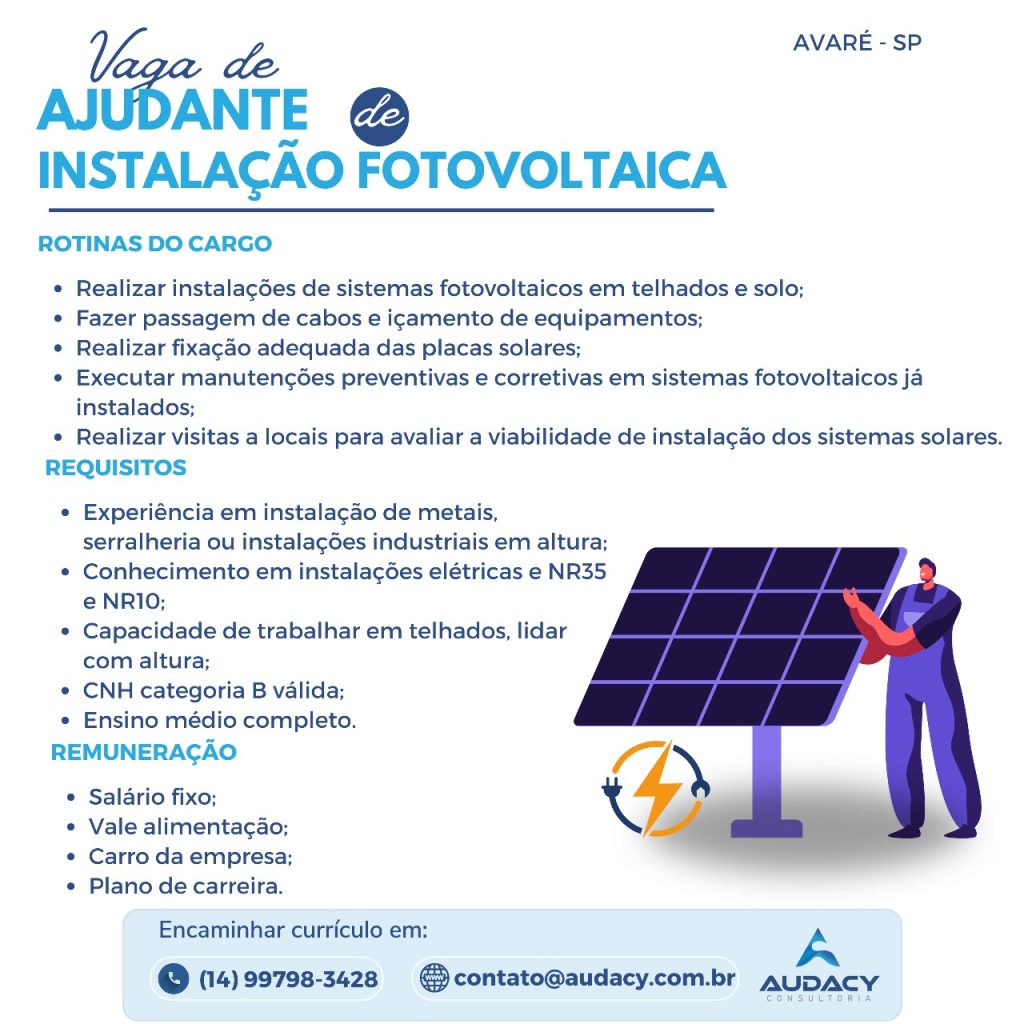 Vaga: Ajudante de Instalação Fotovoltaica
