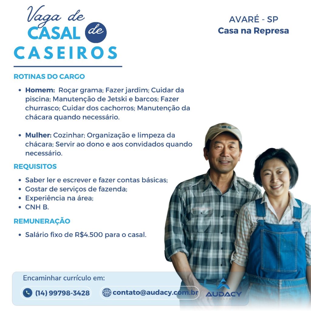 - Para o caseiro: Manutenção geral do local, jardinagem, cuidados com animais, pequenas reparos e segurança da propriedade.