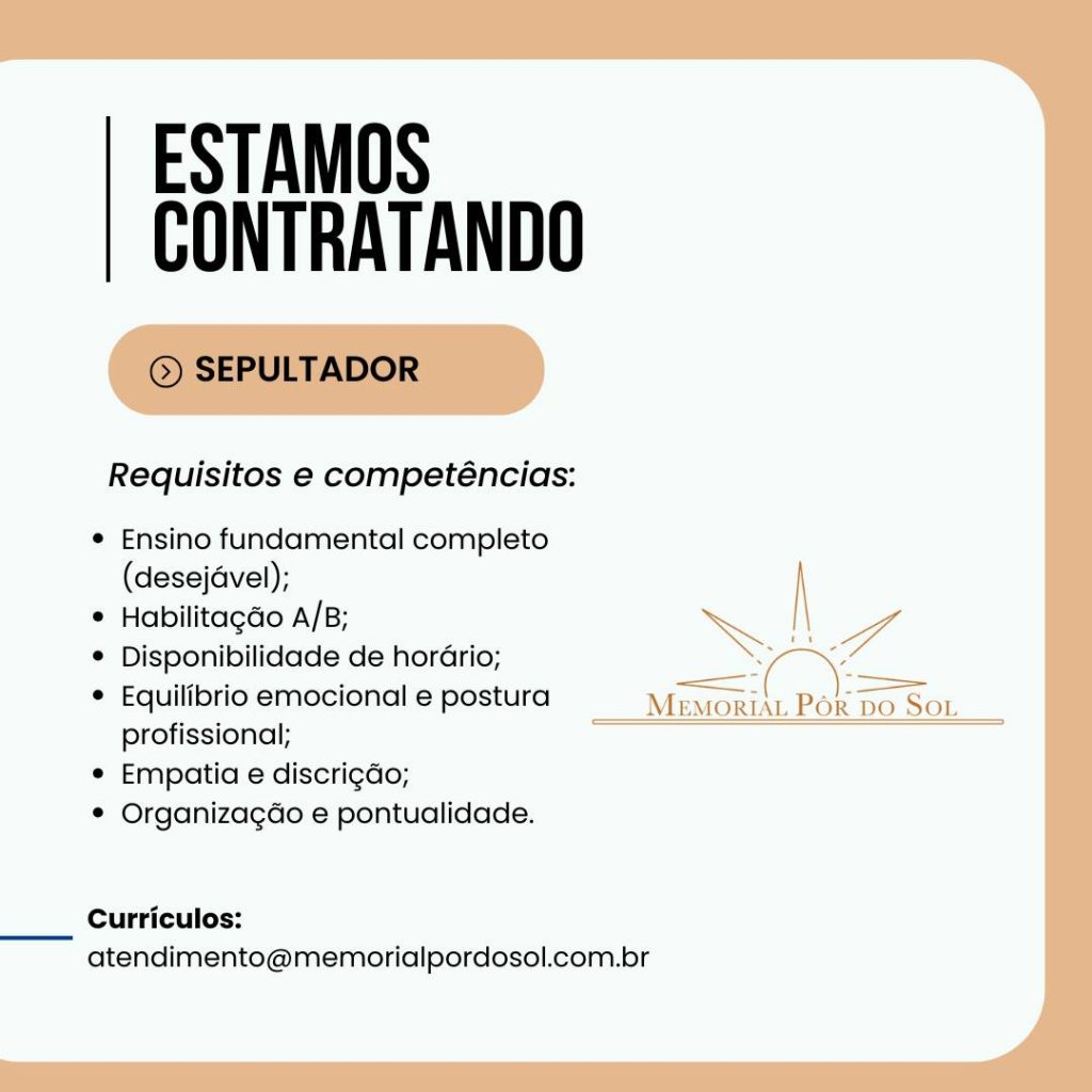 Envie o seu currículo: atendimento@memorialpordosol.com.br